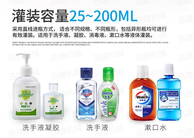 3、免洗手消毒凝膠生產設備灌裝量調整方便,不需更換零配件,即可適用于不同規格的瓶子,調整方便,適應性強