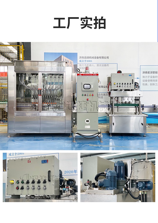 防爆液體酒精灌裝機是目前國內液體灌裝的高端產品,自動化程度高,灌裝計量精確,適用于塑料瓶、玻璃瓶等各種幾何形狀的瓶型的不含氣體的酒水、飲料、調味品及其他溶液的定量灌裝。機器采用觸摸屏代替傳統的按鈕操作,操作簡單、方便、直觀。科技含量高。機器灌裝計量可通過觸摸屏對灌裝時間的調整實現不同計量灌裝,方便操作者使用。