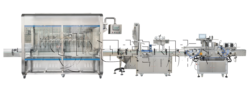 自動油類灌裝旋蓋貼標(biāo)流水線