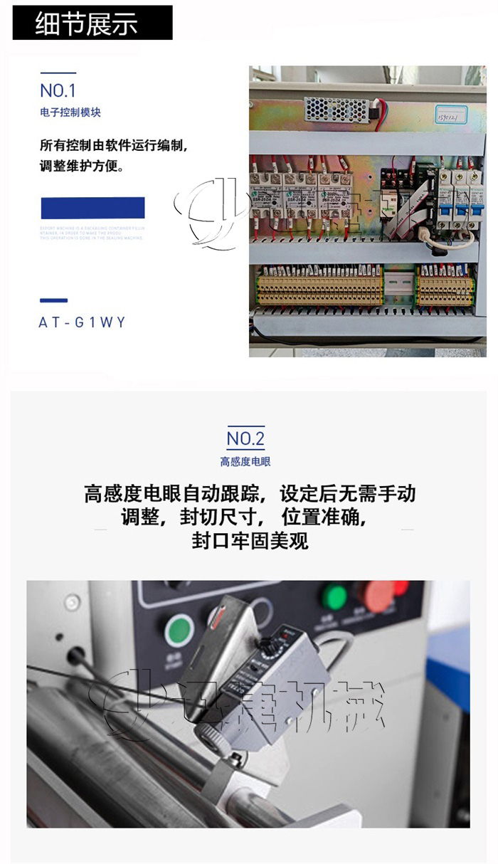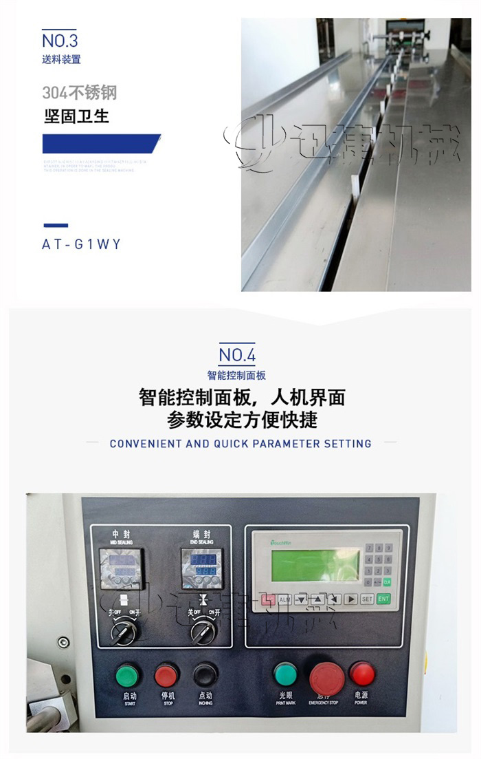 C、微電腦包裝控制器,優良的人機對話模式,使速度、袋長、切點位置檢測等都可在界面上直接顯示。